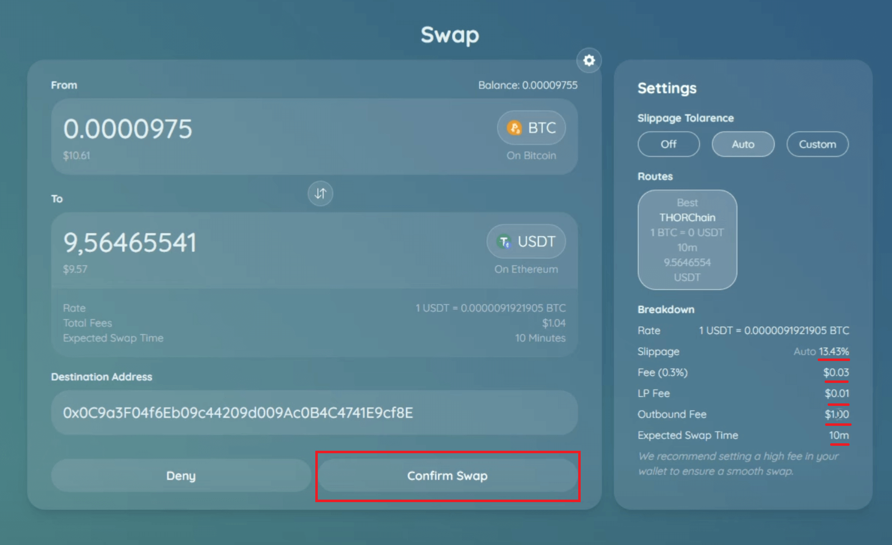 - To ensure a smooth and timely swap, it is recommended to set a higher transaction fee.