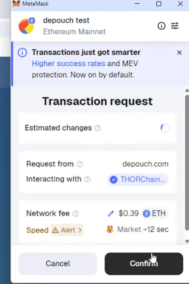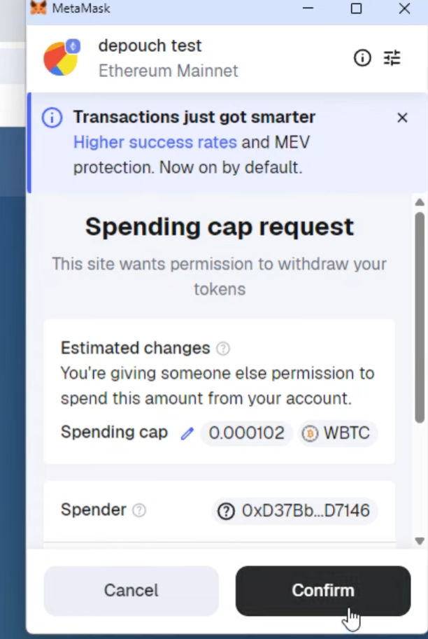 Step 7. Now you need to send the WBTC by confirming the transaction that will popup a few seconds after you approved the spending.